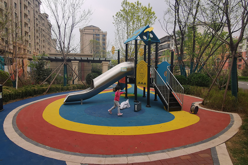 禧悅府位于北京市密云區(qū),總占地面積是56254 m2,擁有住戶732 戶,屬于比較好的居住社區(qū)。為了豐富社區(qū)兒童的娛樂生活,該住宅區(qū)與高樂迪合作,搭建微地形無動力兒童樂園。主要設施有:不銹鋼滑梯、微地形樂園、傳音筒、秋千、搖搖椅等。