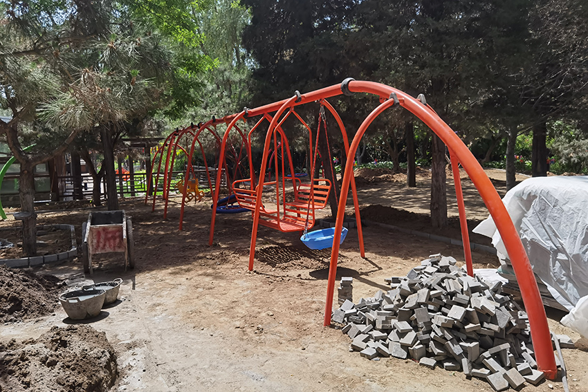 這么多好玩的秋千,是不是都不想回家了。別急著回家啊,下面還有打擊樂器呢。