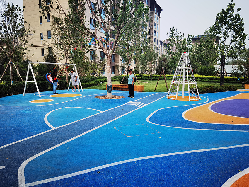 北京亦莊首創(chuàng)遠(yuǎn)洋禧瑞天著社區(qū)的主題樂園位于社區(qū)內(nèi)的中心廣場,廣場采用橡膠地面,擁有微地形樂園,可以讓孩子鉆爬,也有滑滑梯,還有動(dòng)物造型的小滑梯,秋千架,攀爬架等,可以讓孩子們自有玩耍。