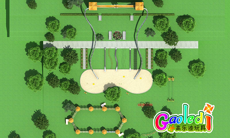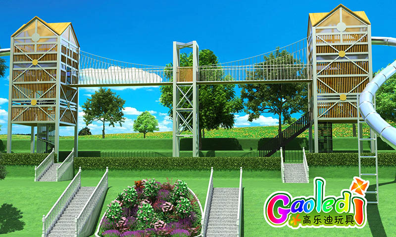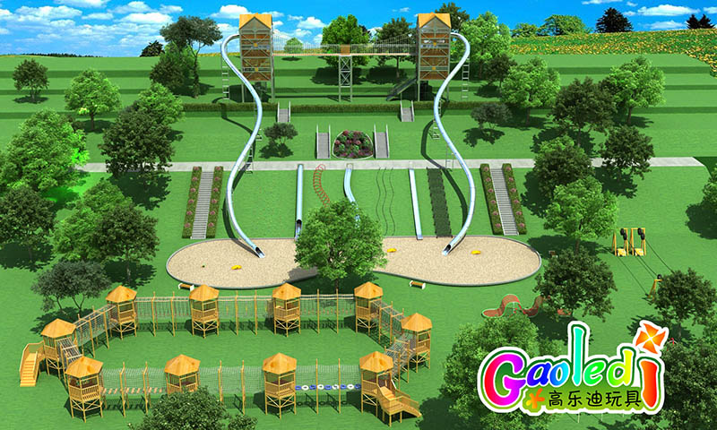 湖北恩施度假村兒童樂(lè)園總占地面積2000平米,此次高樂(lè)迪為度假村量身定制了超刺激的不銹鋼滑梯及兒童拓展。