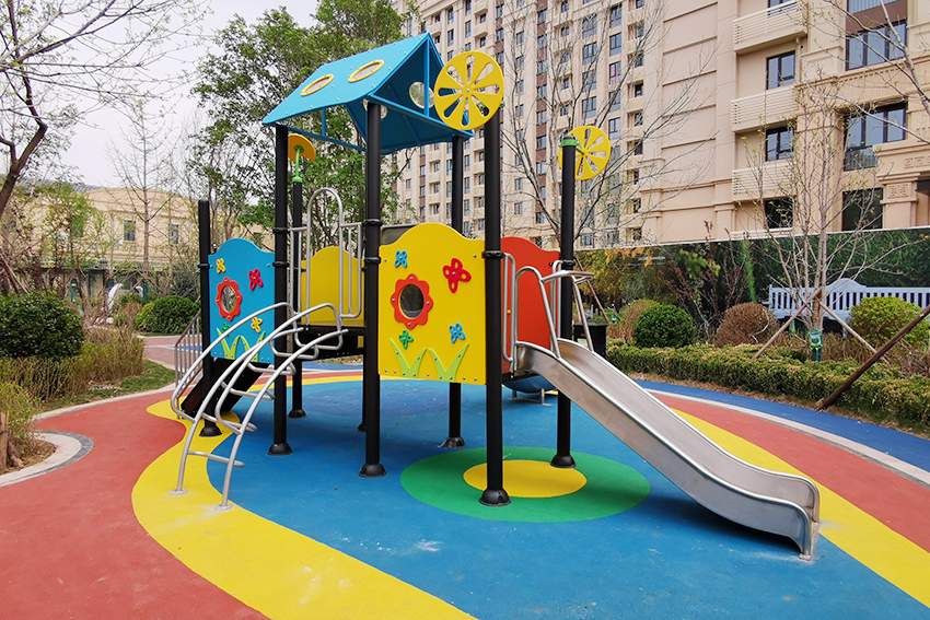 禧悅府位于北京市密云區(qū),總占地面積是56254 m2,擁有住戶732 戶,屬于比較好的居住社區(qū)。為了豐富社區(qū)兒童的娛樂生活,該住宅區(qū)與高樂迪合作,搭建微地形無動力兒童樂園。主要設施有:不銹鋼滑梯、微地形樂園、傳音筒、秋千、搖搖椅等。