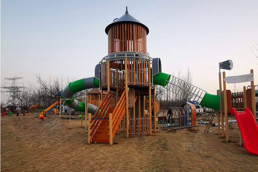北京綠野仙蹤郊野樂園整體造型充滿童話色彩,給孩子們的生活增添一絲夢幻色彩。游樂園內(nèi)的全部設施以木質(zhì)為主,凸顯童話色彩,設有:木屋滑梯,城堡滑梯、動物商店、繩網(wǎng)拓展等設施。